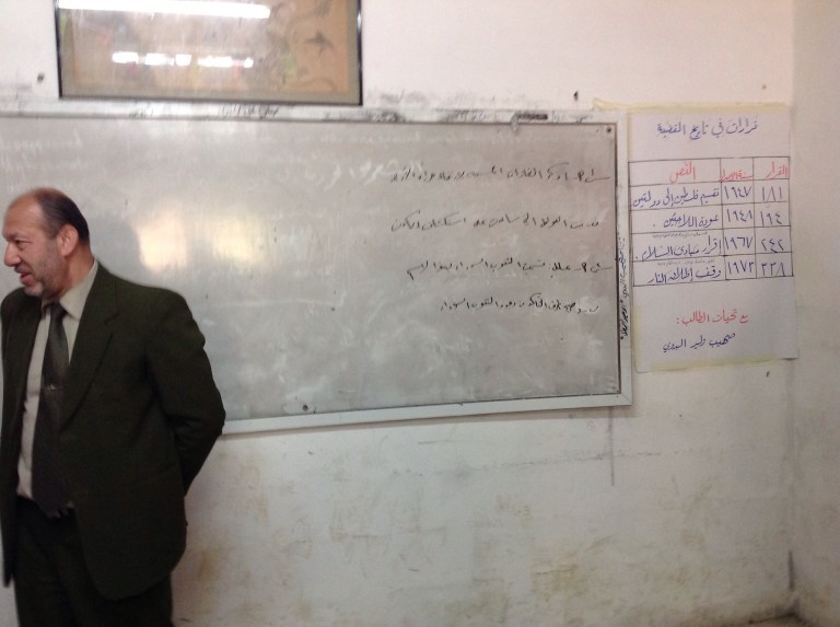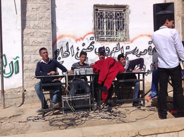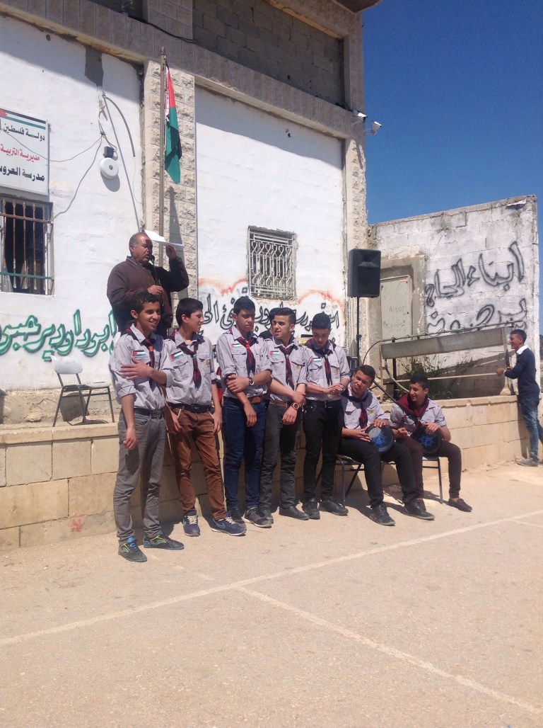 At first the speeches, poems and songs were offered to us all – sitting among the boys and the Authority officials – in a formal and disciplined way. I realised shortly after my arrival that Palestinian men love to make speeches and I understand here that this craft is finely honed as part of the curriculum. The passionate and fiery delivery of fine words, young man followed by young man, was greeted with delight by classmates. There couldn’t be broader smiles across the hundreds of teenage faces – that certainly isn’t something you get to see every day back home.