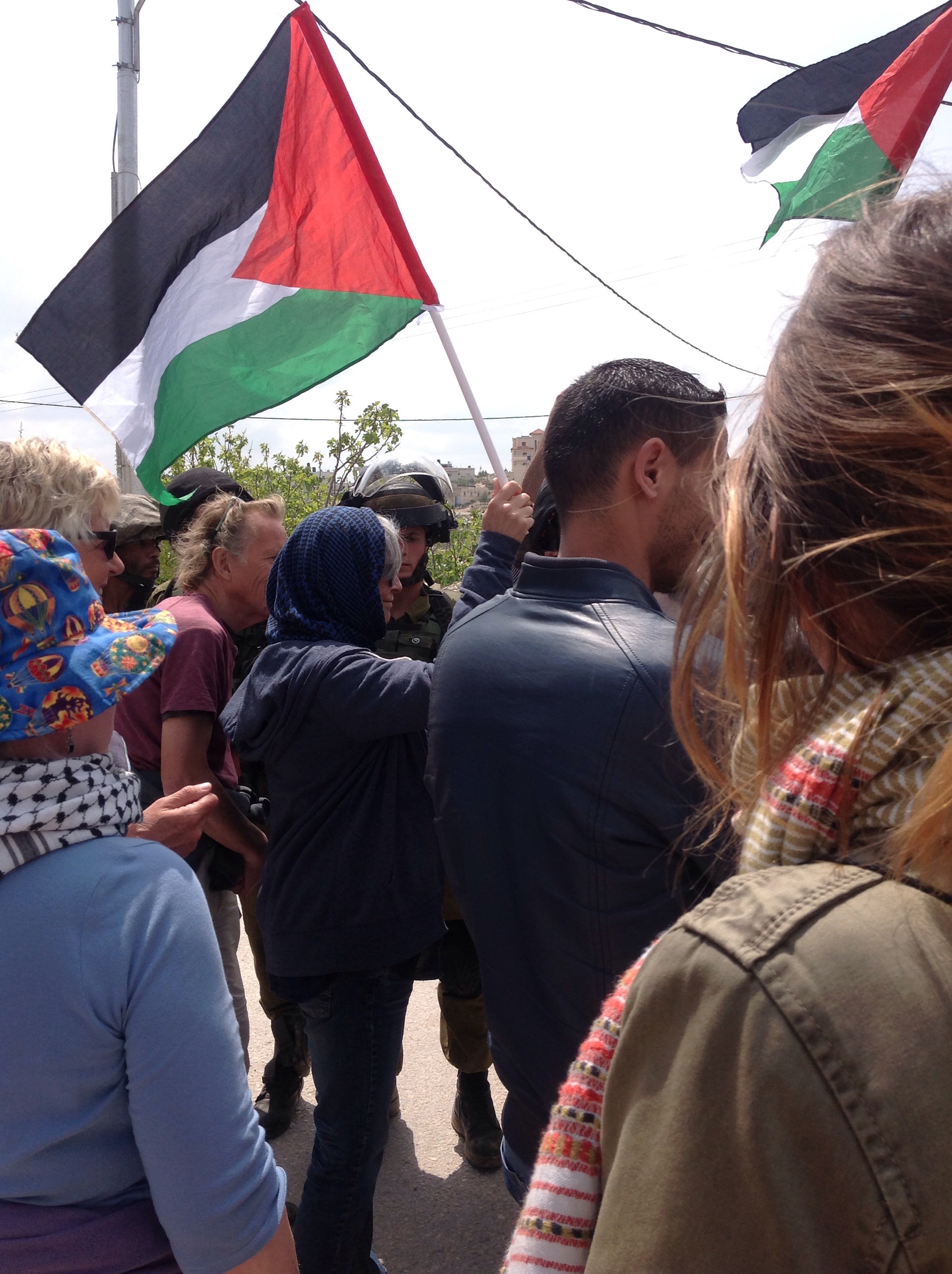 Yesterday was for Israelis Holocaust Memorial Day, today for us it is the Day of Palestinian Prisoners. More than three quarter of a million Palestinians have entered Israeli jails, many are children. The frog in the water has been heated degree by degree and to many Palestinians this life has become normalised. This is what they want. So we will challenge this and will keep demonstrating non violently. We use our voices not guns, our words to explain to the Israeli boys what they are part of.”